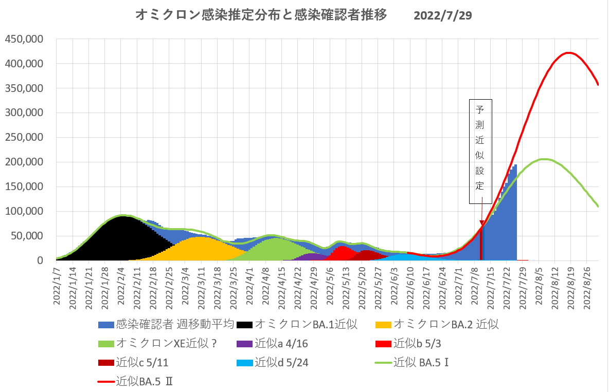 ← COVID-19 日本のオミクロン このまま行けば8月10日~18日頃が感染者数の頂上に