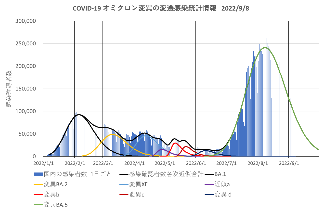 COVID-19 日本のオミクロン 8ヶ月余り、やっとBA.1のピーク以下に下がりました →