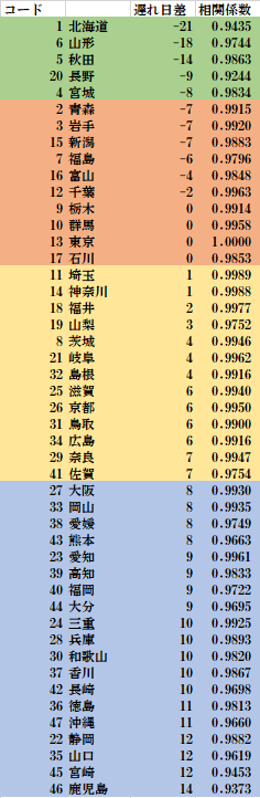北海道の感染確認者数の日系列曲線と東京及び他の地域との相関係数が(0.94)であることから、北海道の変異株が全国に感染した証拠も疑われる。