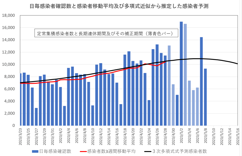 COVID-19 連休明け 予測に沿って進んでいるように見えるが ?