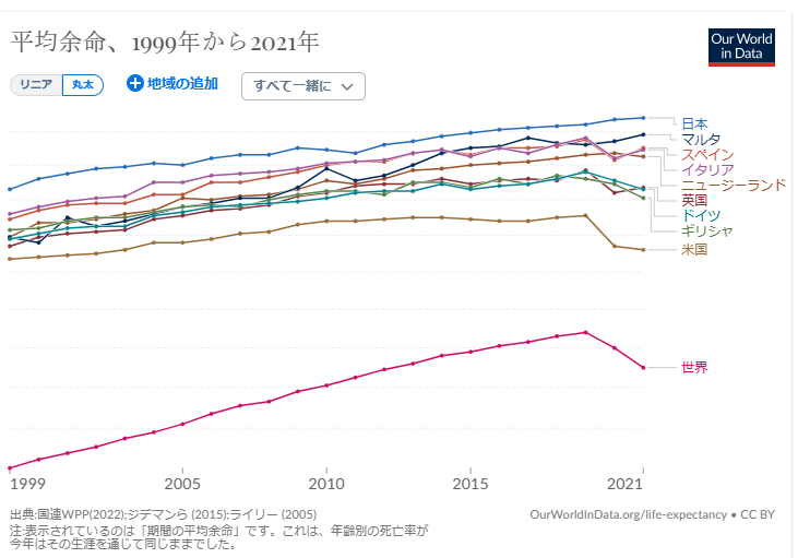 高所得国といわれる世界の国々を選んで平均余命と食習慣を比べてみた。
