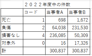 各項目の分類基準は公表されているが、事故統計で最も重要な当事者間の分類がAとB欄に分けられて作表されているが、その分類方法についての説明が見当たらない。