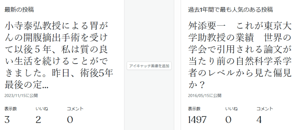 小寺泰弘教授による胃がんの開腹摘出手術を受けて以後5年、私は質の良い生活を続けることができました。昨日、術後5年最後の定期診察を終えて感謝の気持ちを申し上げることができた幸せ、その上、記念にとお願いして、先生が主導完成された研究グループの胃がんをはじめ複数の固形がんの驚異的な精度の診断マーカー発見のご成功、最近公表されたこの論文のコピーにサインをいただくことができました。