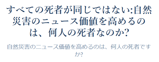 歩行中の高齢者の死亡事故場合、メディアはどれ程の見出しで記事にするだろうか? 目立つ記事にしたいメディアが読者に醸成する間違った認知バイアス。それに乗っかる警察庁の運転免許行政。