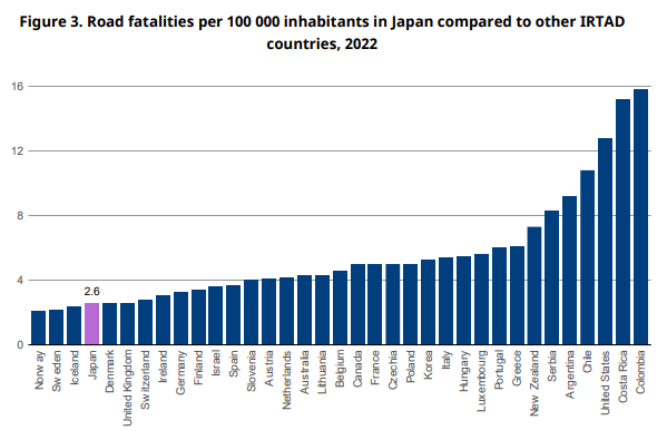 日本の自動車運転安全は世界最上級を達成しているにもかかわらず、道路の安全管理は、データの公表されている22ヶ国中14位。