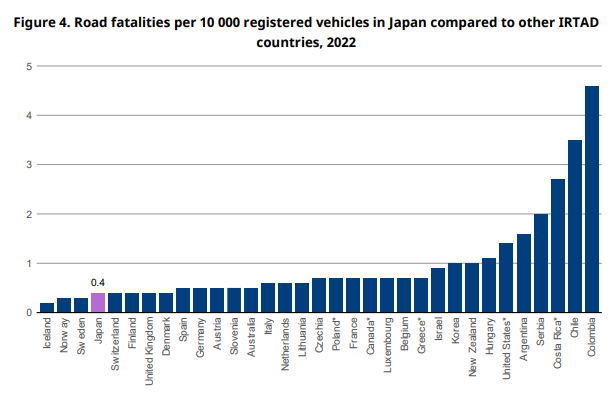 日本の自動車交通事故 世界35ヶ国の中で少ない方から第4位 道路安全管理評価は22か国中14位。これをどう見るか